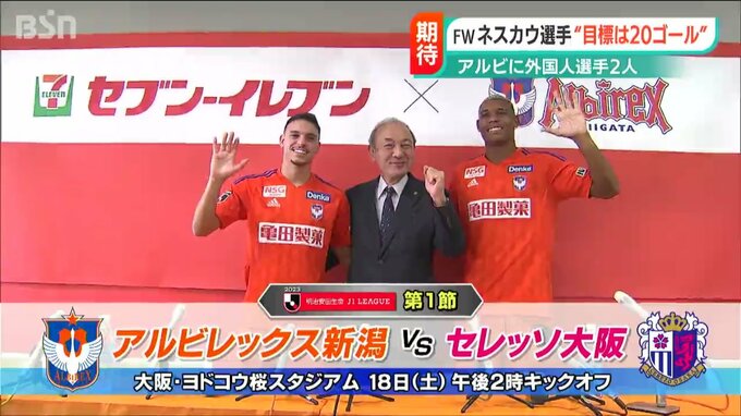 アルビレックス新潟に頼もしい外国人選手が加わりました。加入したのは2人のブラジル人選手で、FWネスカウ選手は「20点取りたい」と意気込んでいます。