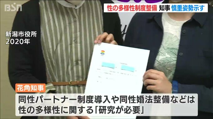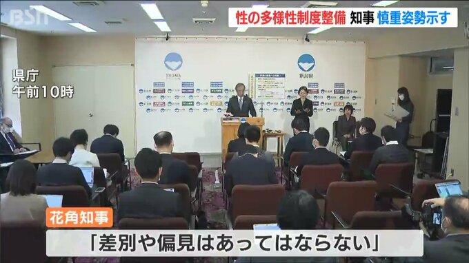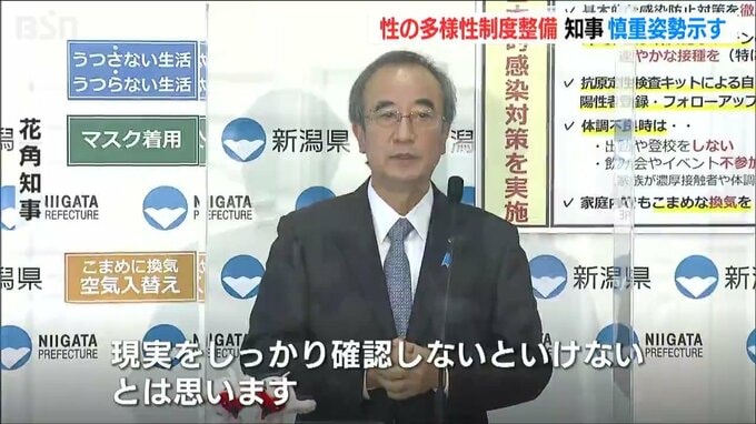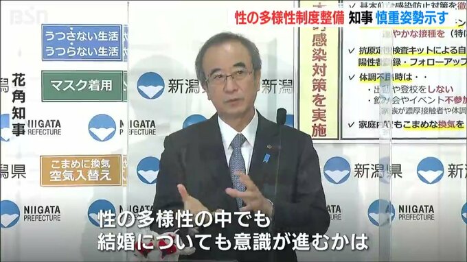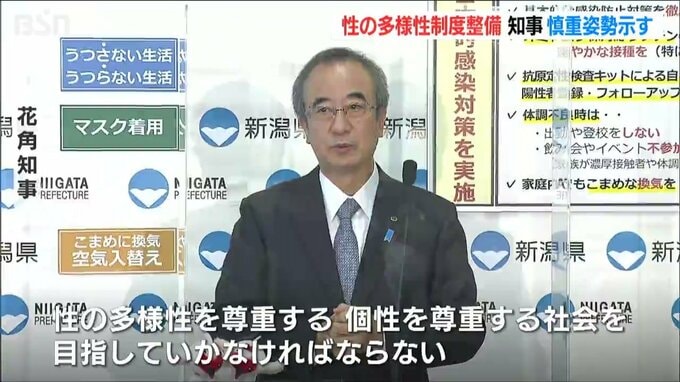 一方で、新潟市や三条市、長岡市が導入したパートナシップ制度を県でも導入したり同性婚を認める法整備などについては、性の多様性に関する「研究がいる」として慎重な姿勢を示しました。