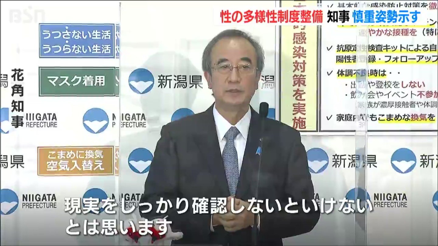 一方で、新潟市や三条市、長岡市が導入したパートナシップ制度を県でも導入したり同性婚を認める法整備などについては、性の多様性に関する「研究がいる」として慎重な姿勢を示しました。