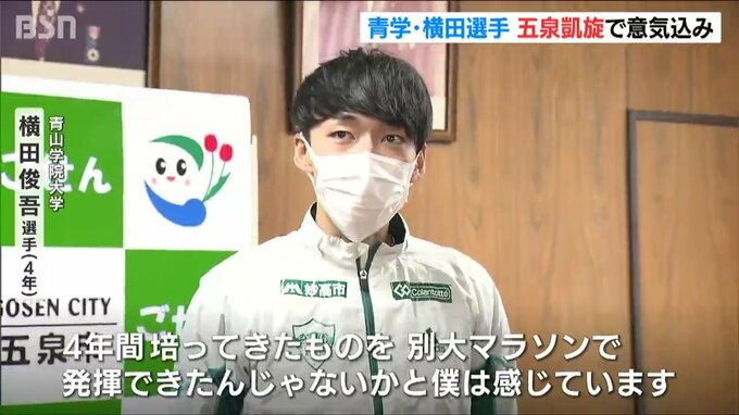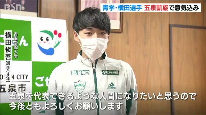 【青山学院大 横田俊吾選手】「4年間培ってきたものを別大マラソンで発揮できたんじゃないかと僕は感じています。五泉を代表できるような人間になりたいと思うので、今後ともよろしくお願いします」