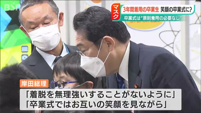 岸田総理はこう述べ、「着脱を無理強いすることがないよう求めたい」とした上で「ぜひ、卒業式ではお互いの笑顔を見ながら参加してほしい」と述べました。