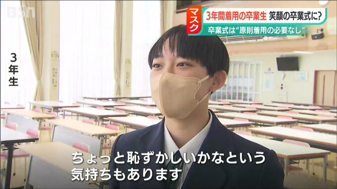 【3年生は】「外すとなったら中学3年間ずっとマスクを着けたまま生活していたので、ちょっと恥ずかしいかなという気持ちもあります」