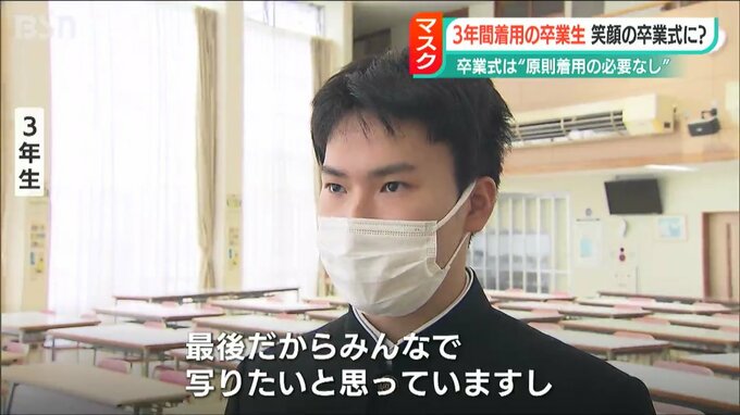【3年生は】「私はどちらかというと(マスクを)外したいと思っています。最後だからみんなで写りたいと思っていますし、マスクを取ってある写真があまりないというのが理由です」