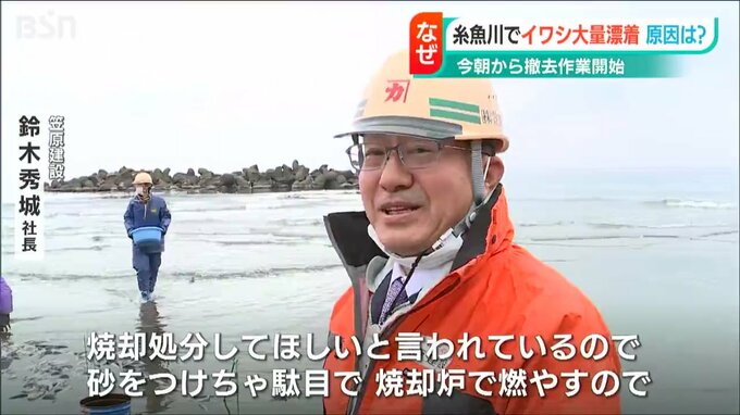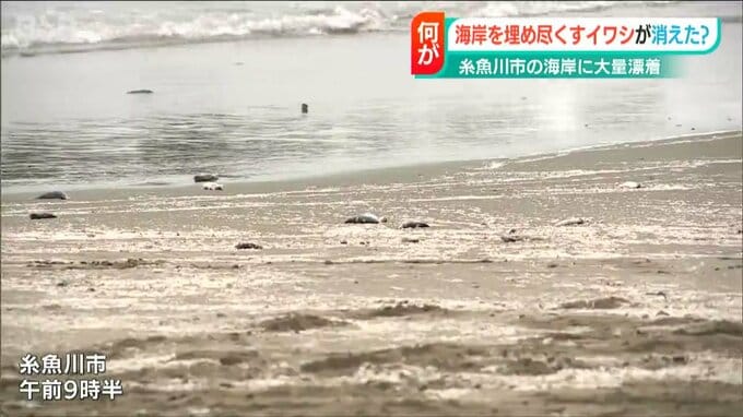 新潟県糸魚川市の海岸に漂着した大量のイワシが、現場の海岸から一時、一斉に消えていました。
