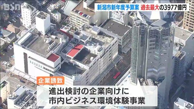 まちの賑わい作りでは、新潟三越跡地の再開発事業に1億7800万円を支援するほか、市内に進出を検討している企業向けにビジネス環境を体験してもらう事業などを新設します。