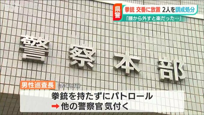 その後の調査でこの巡査長の他、同じ交番に務めていた女性の巡査も、複数回にわたり交番に拳銃を放置していたことが分かったということです。巡査長は調べに対し「拳銃を腰から外すと楽だった。緊張感を欠いていた」などと話しているということです。