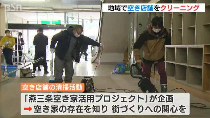 新潟県三条市で18日、空き家などの利活用を目指して地域住民が空き店舗をクリーニングするイベントが行われました。
