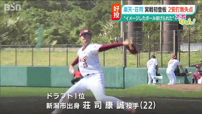 沖縄で春季キャンプ中の東北楽天ゴールデンイーグルス。即戦力として期待されるルーキーの荘司康誠投手(新潟市出身・新潟明訓高→立教大)が実戦初登板で好投しました。