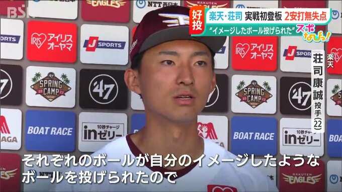 【東北楽天・荘司康誠投手】「持ち球は全部使って、それぞれのボールが自分のイメージしたようなボールを投げられたのですごく良かったと思います」