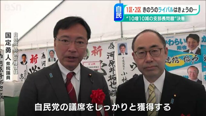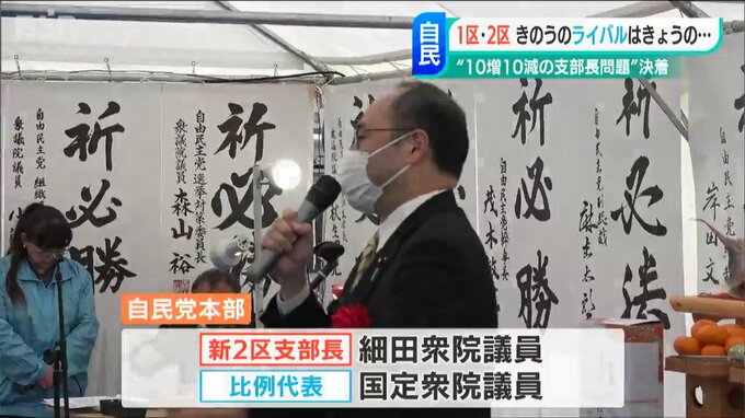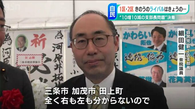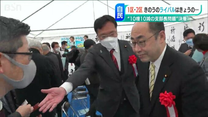 三条市では、自民党の国定勇人衆議院議員と細田健一衆議院議員が県議の事務所開きに出席しました。2人は新2区の支部長の座を争っていましたが、自民党本部は新2区の支部長に細田さんを選び、国定さんは比例に回る形となりました。