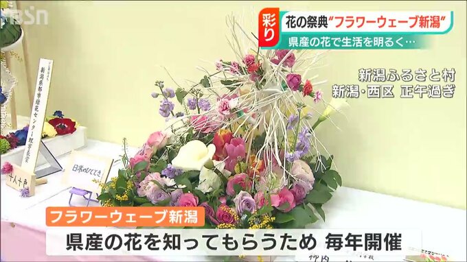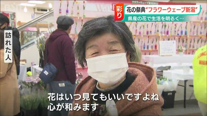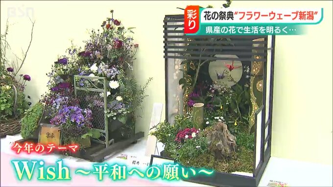 県産の花を広く知ってもらおうと毎年、春を前に開かれている「フラワーウェーブ新潟」。新型ウイルスと国際的な紛争の中新潟の花で生活が明るくなってほしいという願いを込め、今年のメインテーマは「Wish(ウィッシュ)~平和への願い」です。