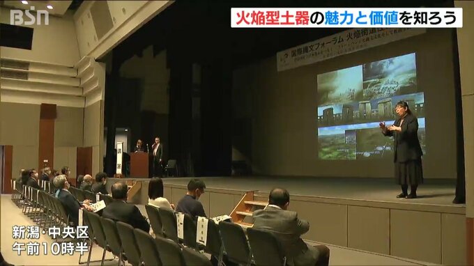 十日町市の笹山遺跡から出た火焔型土器は国内で初めて国宝に指定されました。新潟市で開かれた講演会はこうした新潟県には馴染みがある火焔型土器の魅力などを広く知ってもらおうと、新潟市や三条市など6つの自治体でつくる協議会が企画しました。