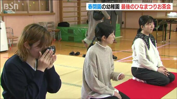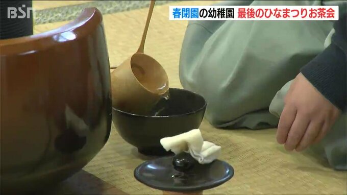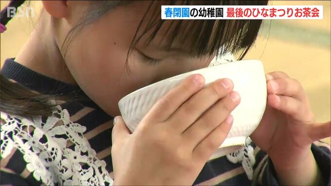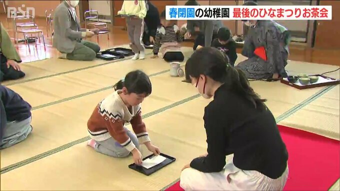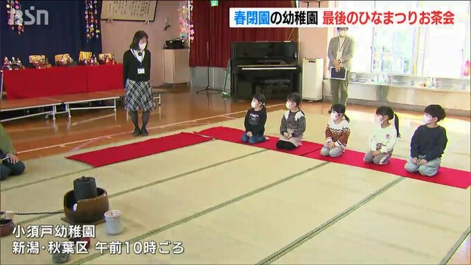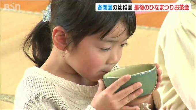 来月で閉園する新潟市の幼稚園でひな祭りのお茶会が開かれ、園児たちは作法を教わりながらお茶を楽しみました。