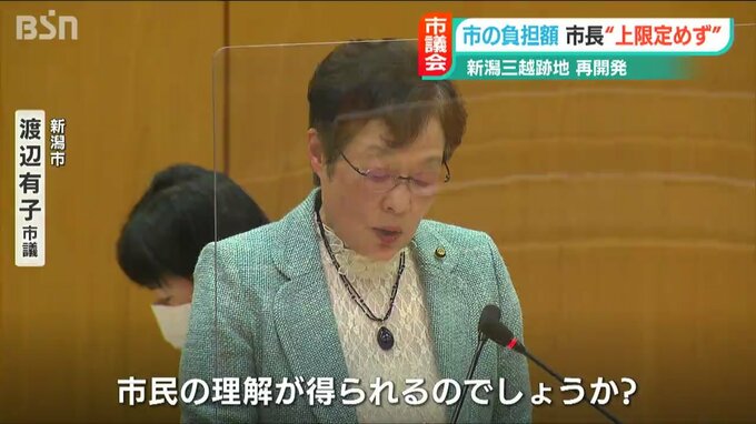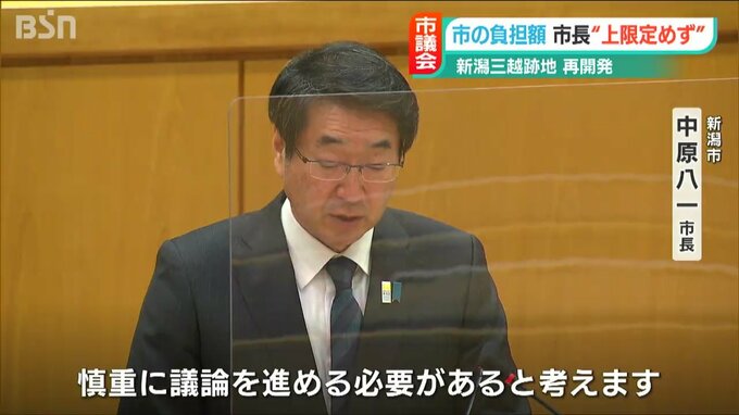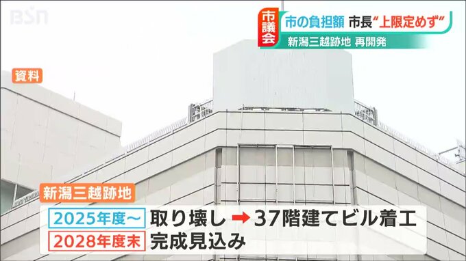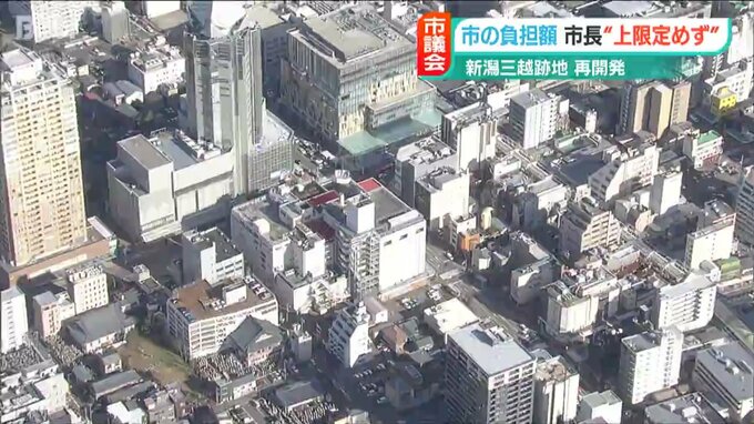 2025年度から建物の取り壊しが始まる新潟市中央区の新潟三越跡地の再開発について、新潟市議会で中原市長は『市の負担額が増える可能性』を示唆しました。