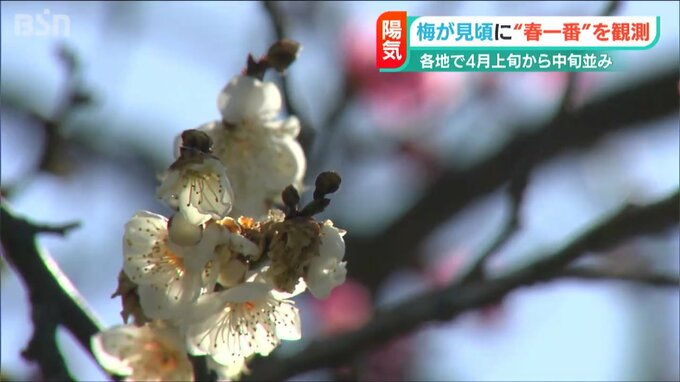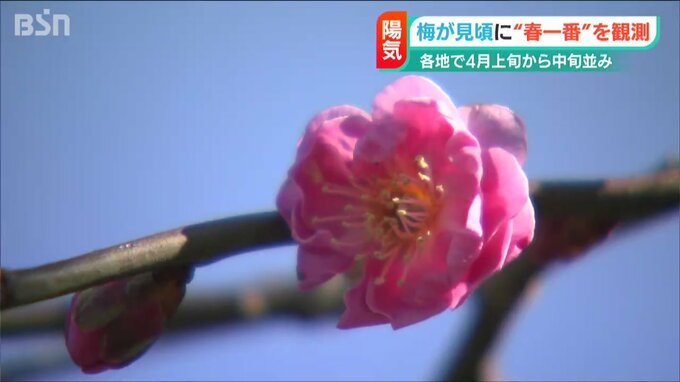 立春から春分の間に初めて吹く「春一番」。暖かい南寄りの強い風のことで、県内では去年より13日遅い観測となりました。