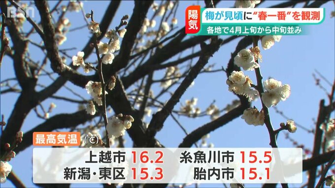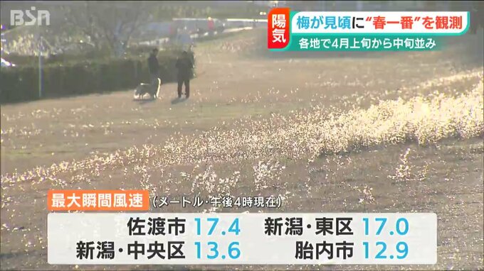 28日の県内は高気圧に覆われ、上越市では最高気温16度を観測するなど、各地で4月上旬から中旬並みの暖かい一日となりました。こうした中、風も強まり、気象台は新潟を含む北陸地方で「春一番が吹いた」と発表しました。