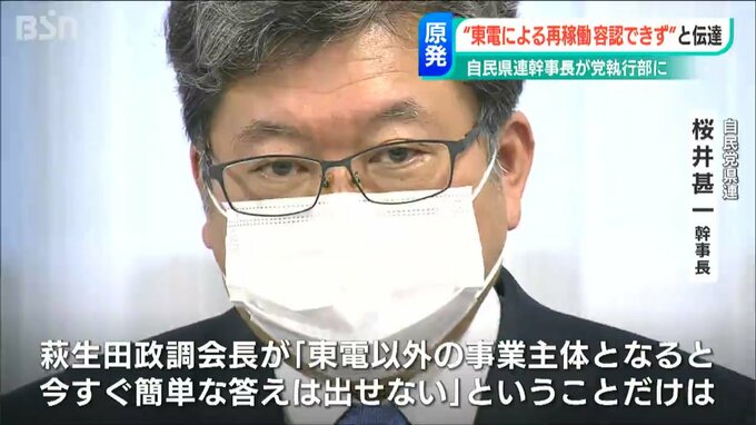 【自民党県連 桜井甚一 幹事長】「萩生田政調会長が『東電以外の事業主体ということになると、今すぐ簡単な答えは出せない』ということだけはお話されました」