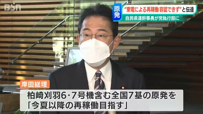 「東京電力が主体となる原発運営は受け入れがたい」と党執行部に伝えたということです。「東電の体質」を理由に、「県連の総意」として述べたとしましたが…