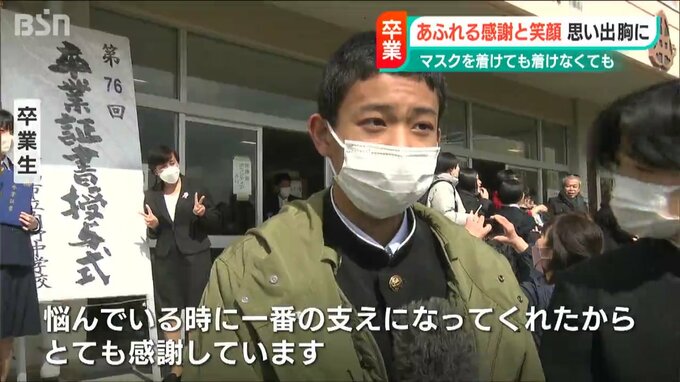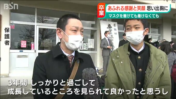 【保護者】「どんな世の中になっていくか分からない中でも、3年間しっかりと過ごして成長しているっていうところを見られてよかったと思うし、卒業おめでとうと伝えたい」