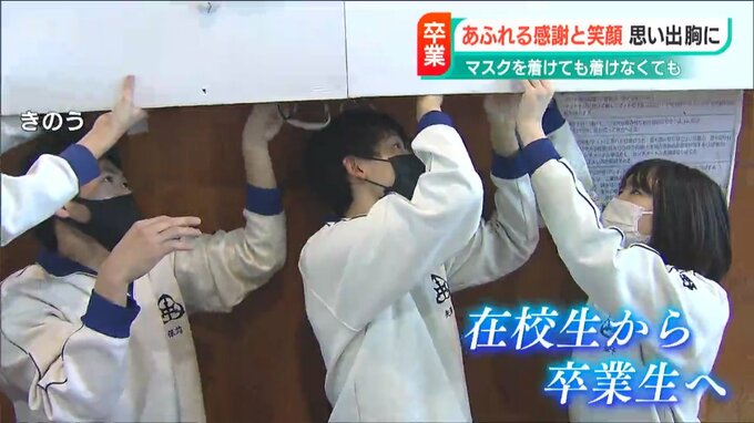 卒業式には参加できなかった在校生は、前日に卒業生に向けて、こんなメッセージボードを設置していました。