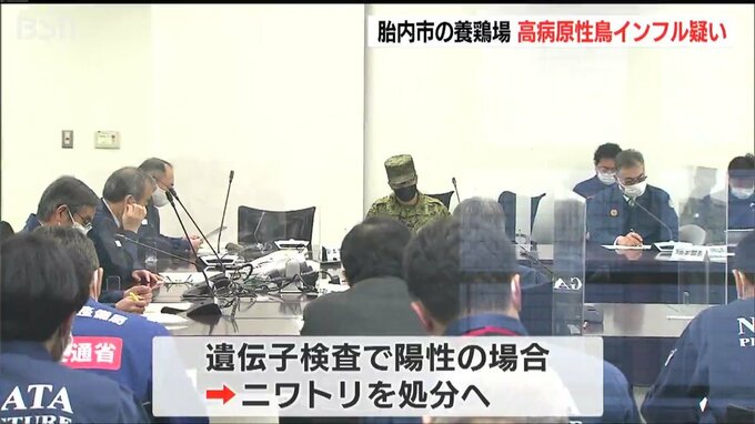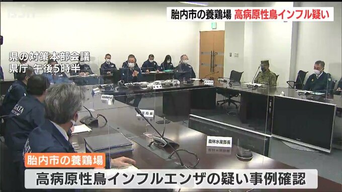 胎内市にある採卵用の養鶏場で高病原性鳥インフルエンザが疑われる事例が確認され、県は対策本部を立ち上げ、今後の対応などを検討しました。