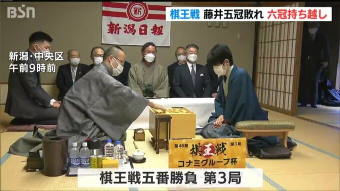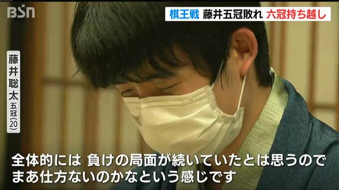 藤井五冠の先手で始まった対局はお互い4時間の持ち時間を使い、最後は1分将棋に。午後8時過ぎに174手で渡辺棋王が勝利し、藤井五冠の史上2人目、最年少での六冠達成は持ち越しとなりました。