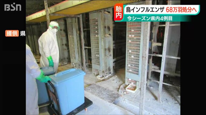 高病原性鳥インフル確定 68万羽を24時間態勢で処分へ 新潟・胎内市 2023年3月6日(月) 19:40 国内 新潟県胎内市の養鶏場のニワトリが高病原性鳥インフルエンザに感染していること分かり、およそ68万羽の処分が始まりました。県は自衛隊に災害派遣を要請し、24時間態勢で対応に当たっています。白い防護服を着た作…