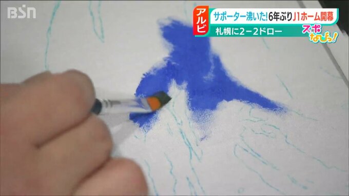 髪の毛部分だけで4時間あまり。アルビ愛が希代美さんの筆を走らせます。