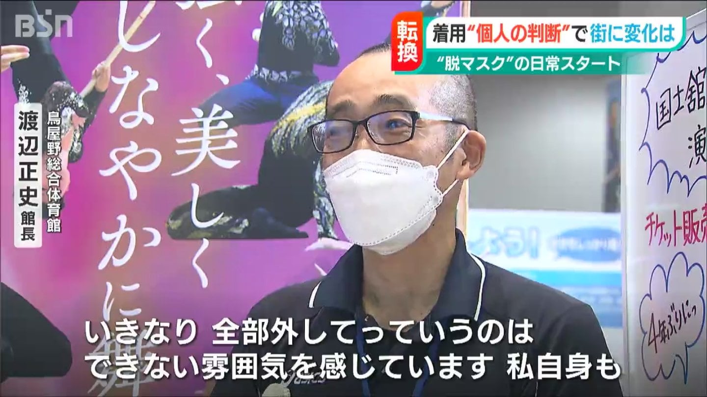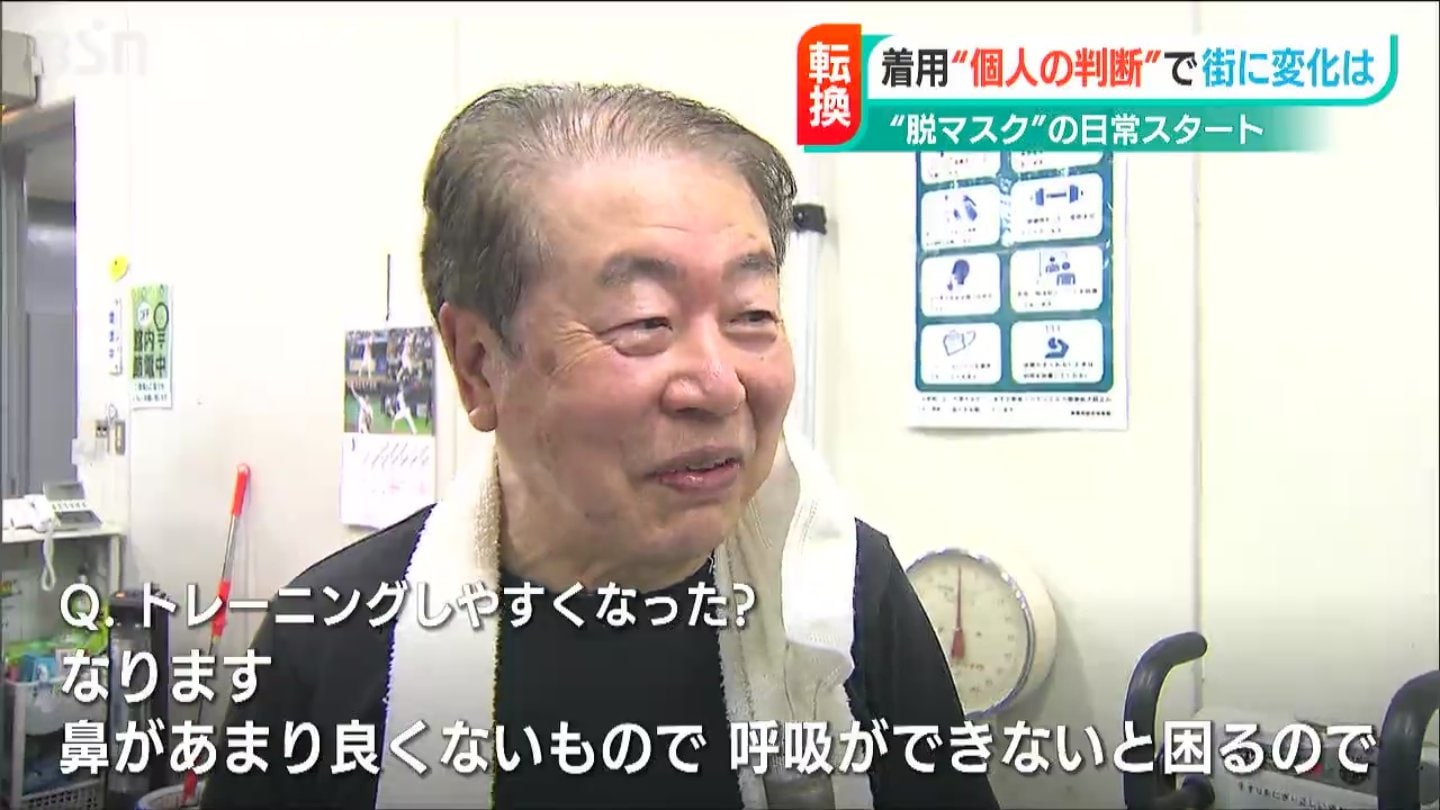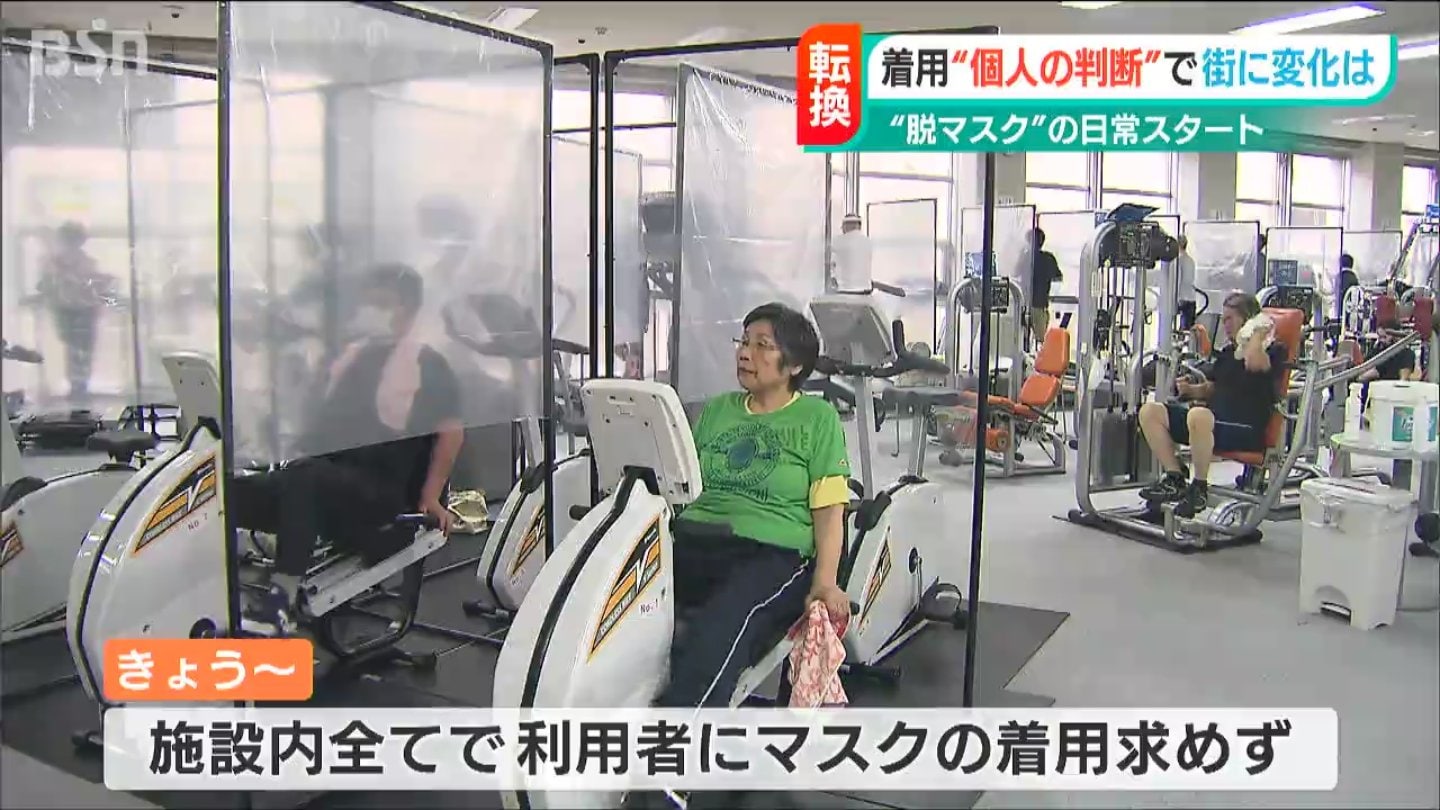 【鳥屋野総合体育館 渡辺正史 館長】「マスク外せるといいなというような声も聞いているのですけど、やはりまだほかの方の目があるとかで、心配されている方がいらっしゃるみたいでした。いきなり外してというのはできない雰囲気を感じています。私自身も」