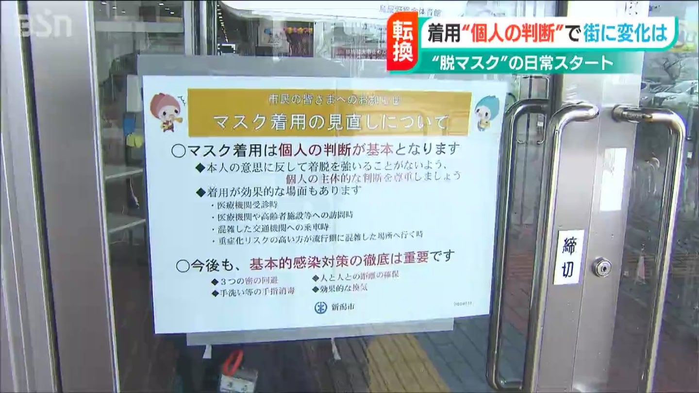 脱マスクの日常初日、新潟駅を利用する多くの人はマスクを着用していました。