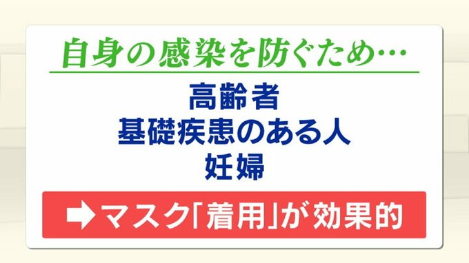 ただ、感染リスクの軽減のために、高齢者・基礎疾患のある人・妊婦などに対しては、マスクの着用が効果的だとしています。