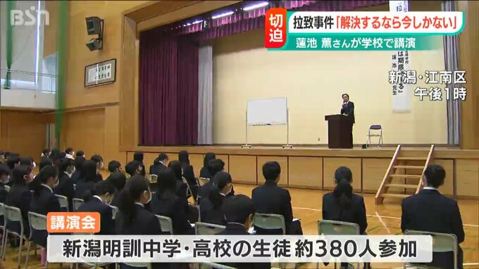 北朝鮮による拉致被害者の蓮池薫さんが新潟市の学校で講演会を開催しました。