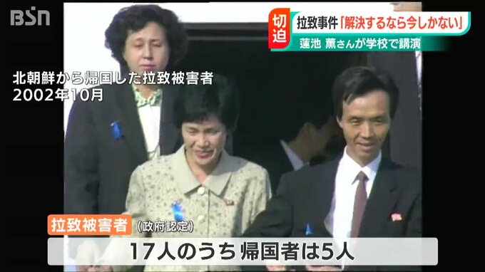 日本政府が認定した拉致被害者17人のうち、帰国を果たせたのはわずか5人。蓮池さんは、拉致被害者も被害者家族も高齢化しているとして早期解決を強く訴えました。