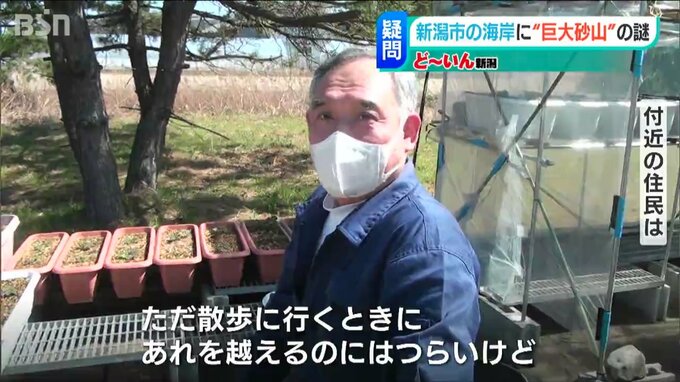 【付近の住民は】「冬の風でこんな山になった。それでも一時、砂山の上を取ったんだけどね、またああなった。ここができて何年ぐらいたつだろう…。あの時はせいぜいトラックの荷台ぐらいだったの」
