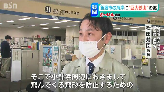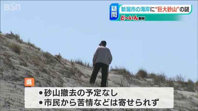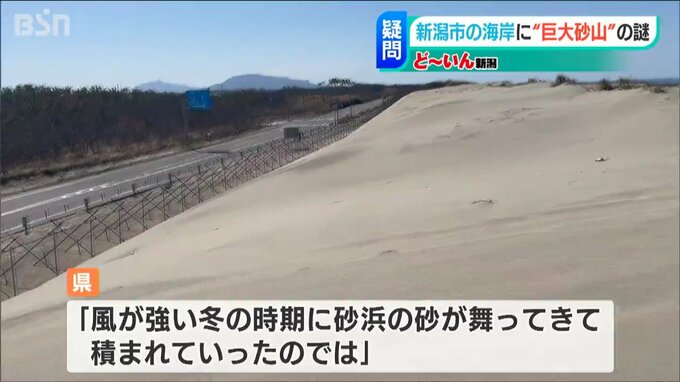 海岸を管理する新潟県に聞いてみると「いつから砂山ができたかはわからないが、風が強い冬の時期に砂浜の砂が舞ってきて積まれていったのでは」と回答。