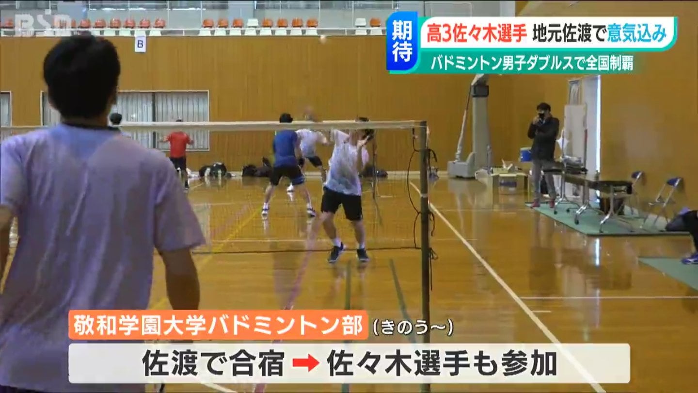 敬和学園大学バドミントン部は16日から佐渡で合宿を行っていて、佐々木選手も参加。インカレ優勝を目指し、新たな環境での活動をスタートさせています。