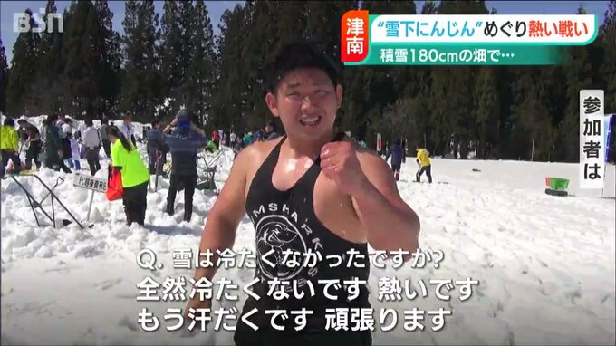 青空が広がり春の陽気となった春分の日だった21日、まだ多くの雪が残る新潟県津南町では、雪の下で冬を越した『にんじん』をめぐる“熱い戦い”が繰り広げられました。180cm積もったの雪の下に眠るにんじんを掘り起こす『雪下にんじん堀り競争』です。