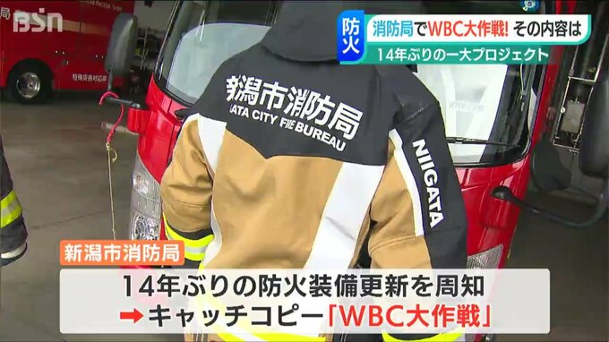 消防活動に欠かせない防火装備がこのたび、14年ぶりに更新されたことを広く知ってもらおうと、いま日本中が注目する野球にかけて『WBC大作戦』というキャッチコピーで展開しているものです。