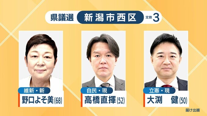 7 新潟市西区選挙区(定数3)…新潟市西区