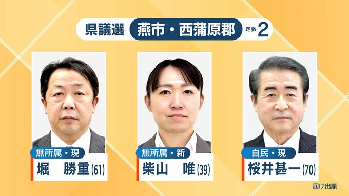 19 燕市西蒲原郡選挙区(定数2)…燕市、弥彦村