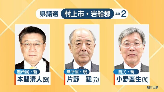 18 村上市岩船郡選挙区(定数2)…村上市、関川村、粟島浦村