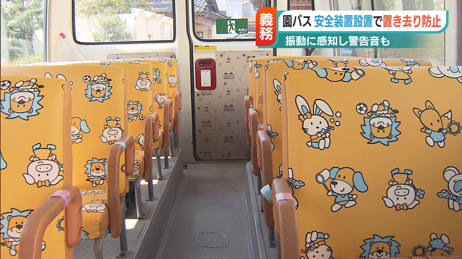 静岡県で園児が通園バスに置き去りにされ死亡した昨年の痛ましい事件を受け、政府が義務付けた安全装置の設置。