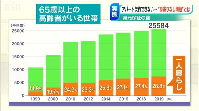 厚生労働省の高齢社会白書では、65歳以上の世帯は全国でおよそ2600万世帯。このうち、およそ3割が一人暮らしですが、頼れる親族などがいるかどうかは調査されていません。また、若くして身寄りがない人もいるとみられています。