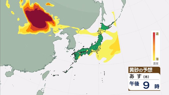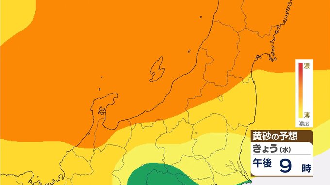 12日夜から13日の午前中にかけて、新潟県内は、全県で黄砂に覆われる状態が続きそうです。