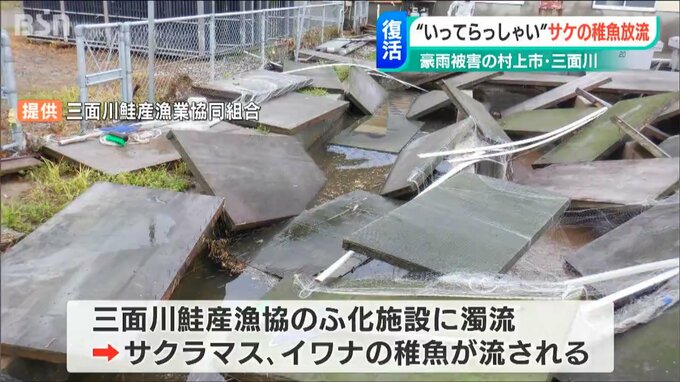 去年8月、記録的な豪雨に見舞われた村上市、三面川鮭産漁業協同組合のふ化施設には濁流が流れ込み、サクラマスやイワナの稚魚が流されてしまうという甚大な被害を受けました。