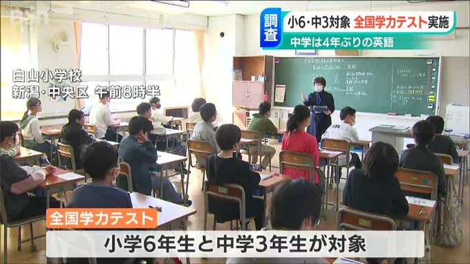 小学6年生と中学3年生を対象に行われる全国学力テスト。新潟市中央区の白山小学校でも6年生の児童19人がテストに臨みました。