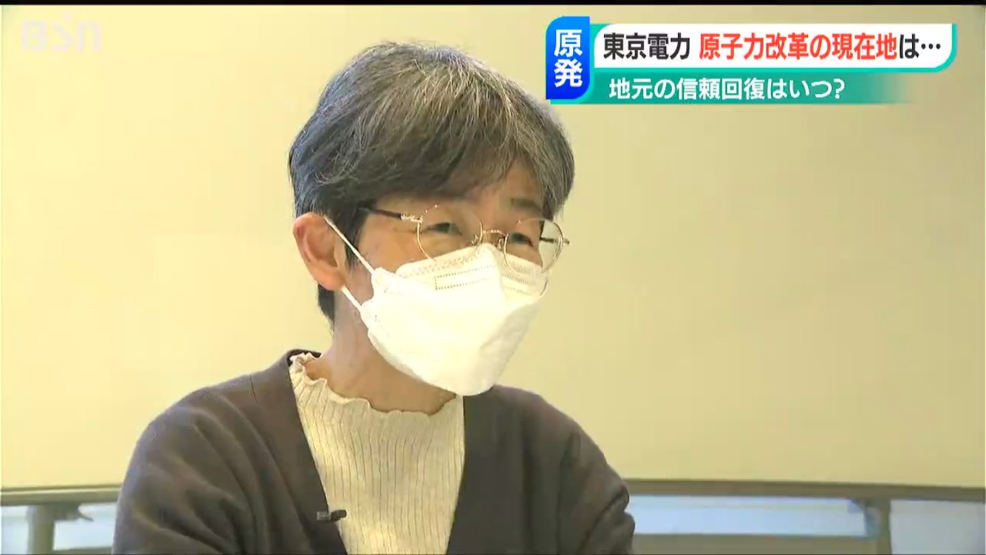 柏崎・刈羽地域の住民が意見を交わす「地域の会」。委員の1人で、再稼働に反対する竹内英子さんは、「東電の企業体質はいまだに改善されていない」と不信感をあらわにします。