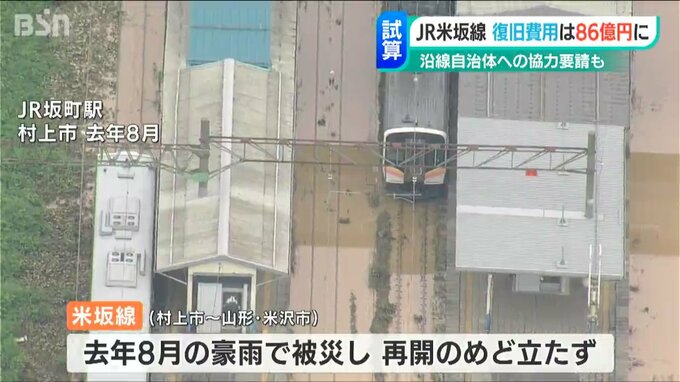 2022年8月の豪雨で大きな被害を受けたJR「米坂線の復旧費用」が、86億円に上ることが分かりました。