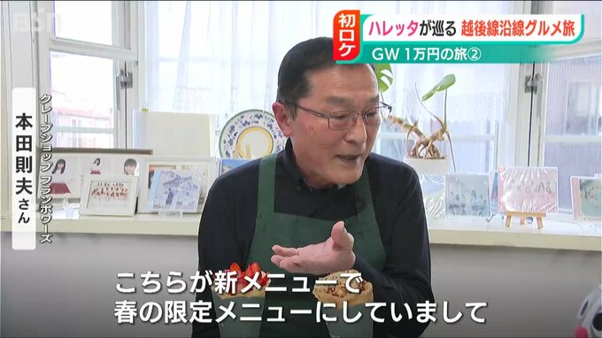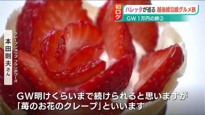 「ゴールデンウィーク明けくらいまで続ける予定の春の限定メニュー『苺のお花のクレープ』もご紹介します」