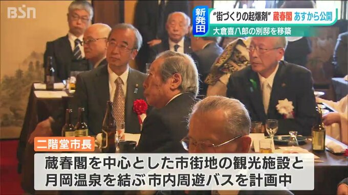 二階堂市長は、蔵春閣を中心とした市街地の観光施設と月岡温泉を結び、新発田市内の観光地を回る「周遊バス」を走らせたいとしています。